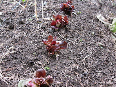 Hardy green and red lettuce, whose names have been long forgotten, appear each year where their seed stock has fallen.