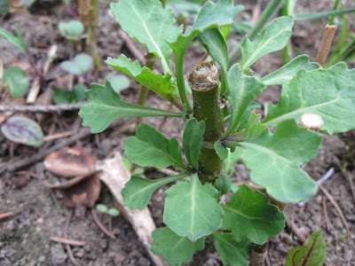 In a previous post, Our Boreal Garden, I mentioned the transplanting of kale rootstock. Kale and collard greens that have been overwintered either in our garden or replanted from the root cellar can be expected to bring forth new growth in the very early spring. One of the advantages of this compared to direct seeding is that one should be able to achieve much larger leaf growth early on as the roots have already been developed and most of the plants energy is directed towards leafing out and going to seed. We usually have a good one or two months in which we are able to harvest the leaves before warm temperatures cause the plants to bolt.