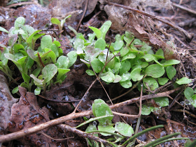 Hardy green and red lettuce, whose names have been long forgotten, appear each year where their seed stock has fallen.