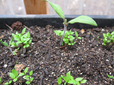 Sometimes I think all we need to do it make a few flats of garden dirt and wait to see how many tomatoes appear, like this nice one in amongst the eggplants.
