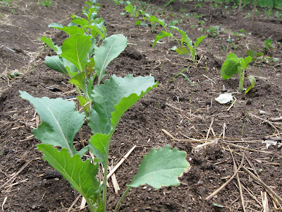 "One of the solutions to this problem, and the one that works best for us, is to cut squares of perforated weed barrier and place them around the base of each and every plant" he says with an exhausted sigh. Floating row covers can also keep the flies off cole crops but wind and water issues prevent us from using them. Besides, what fun would simple row covers be when one can look forward to cutting and placing hundreds of little squares instead. :)