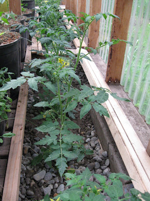 Patio and Husky Dwarf tomatoes planted in the greenhouse