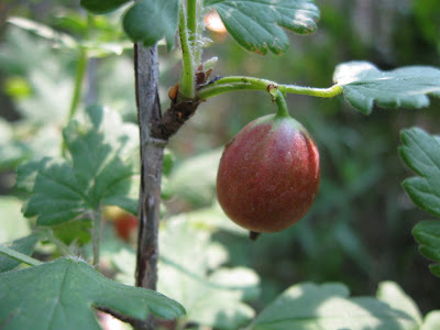 Perhaps my favorite thing about this plant when compared to our gooseberries and currants is that the fruits, in our garden, ripen much later helping us to avoid any problems with currant flys that so often plague the latter two. The flavor can best be described as sweet and tart, I have a feeling we will enjoy using it in various recipes in the future. It is not as tasty as a goosberry but if you take into consideration it's lack of pest issues the flavor gap becomes less noticable. One other thing I like about this particular plant is that the fruits do not fall off everytime the wind blows like our currants tend to do. The berries are firmly attached, almost too firmly.