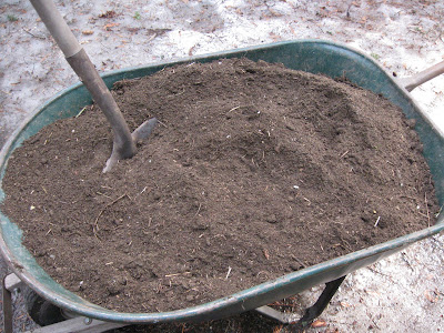 Chicken dirt - (50%) Throughout the winter months I haul wheelbarrows full of dirt that has been gathered from our sod compost pile and the forest floor to our chickens. They of course love this and reward us by removing any insects and weed seeds from the soil, fertilizing it as they work. After a week or so I remove the dirt and bring them some more, eventually ending up with a nice pile of what we call "chicken dirt"...our seedlings seem to like this.